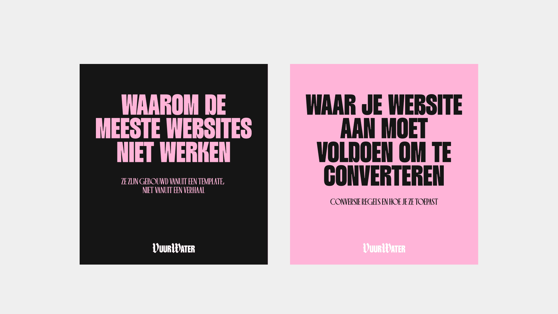 Studio Vuurwater is een bolde studio. We geloven in de echte kracht van staan waar je voor staat als merk (overigens ook als persoon). Dat kan best schuren.