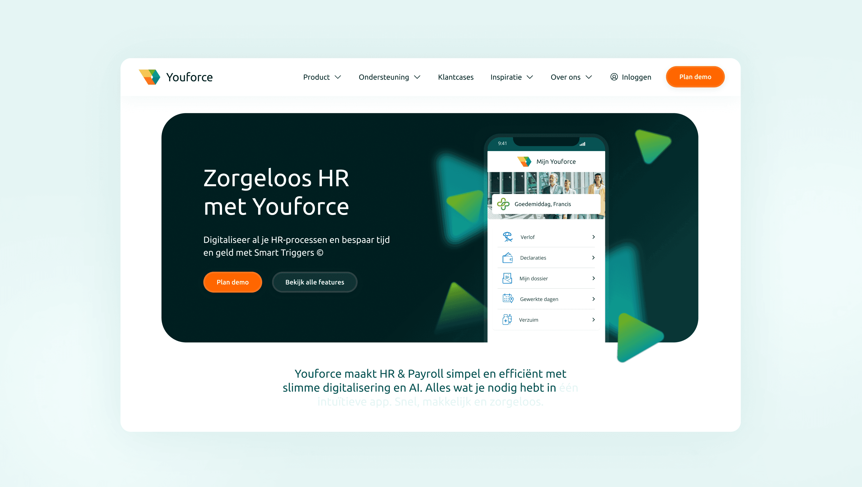 De challenge: Youforce groeide snel. Te snel. Hun merk was hun propositie voorbijgerend. "Smart Simplicity" was een mooie claim, maar niemand voelde het. Hun website? Veilig. Voorspelbaar. Niks mis mee – maar ook niks bijzonders.